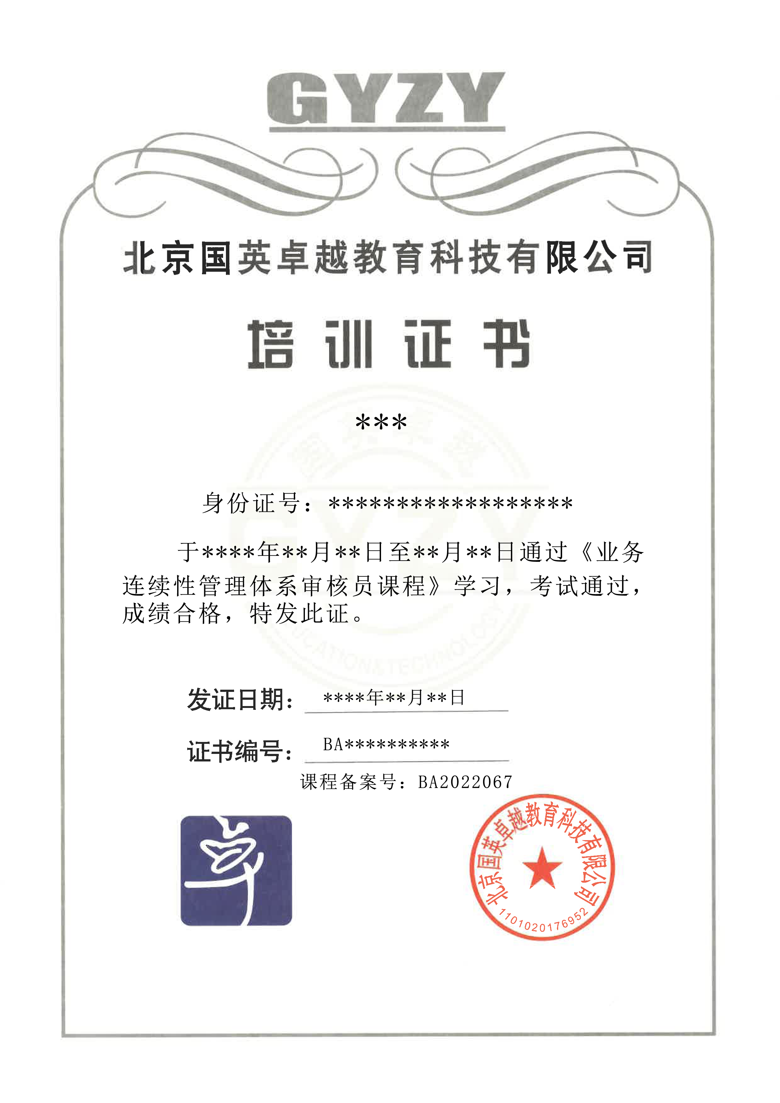業(yè)務(wù)連續(xù)性認證證書(帶標)