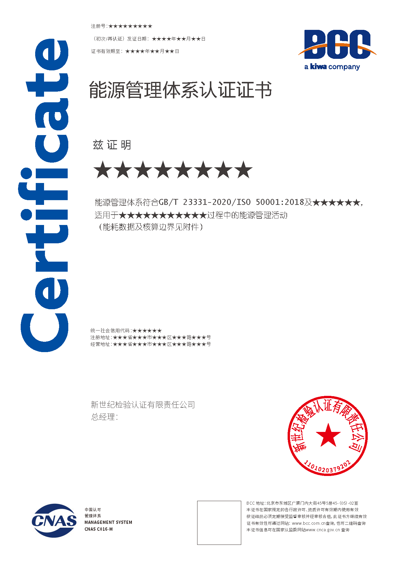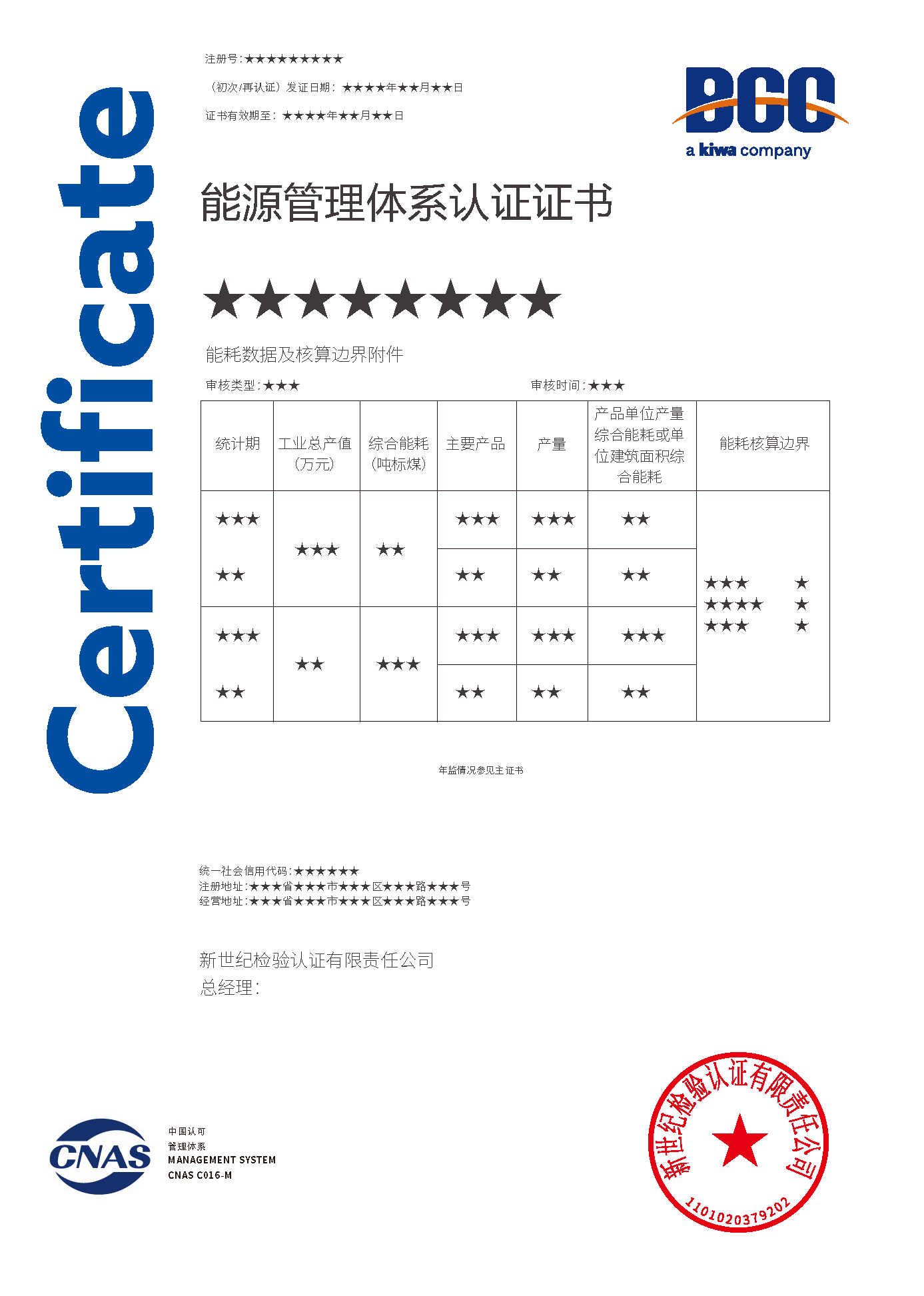 能源管理體系認(rèn)證證書 能源管理體系認(rèn)證證書(能耗附件)