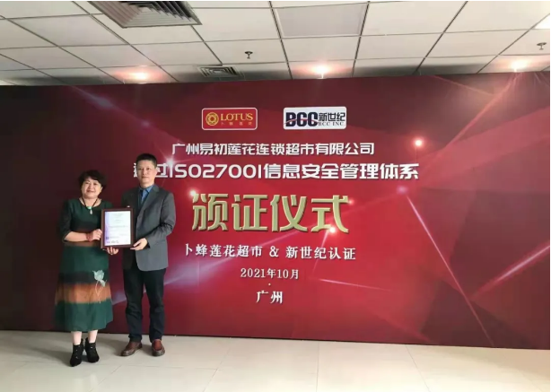 10月27日,廣州易初蓮花連鎖超市有限公司(以下簡稱:廣州易初蓮花)通過信息安全管理體系ISO27001認證頒證儀式隆重舉行。