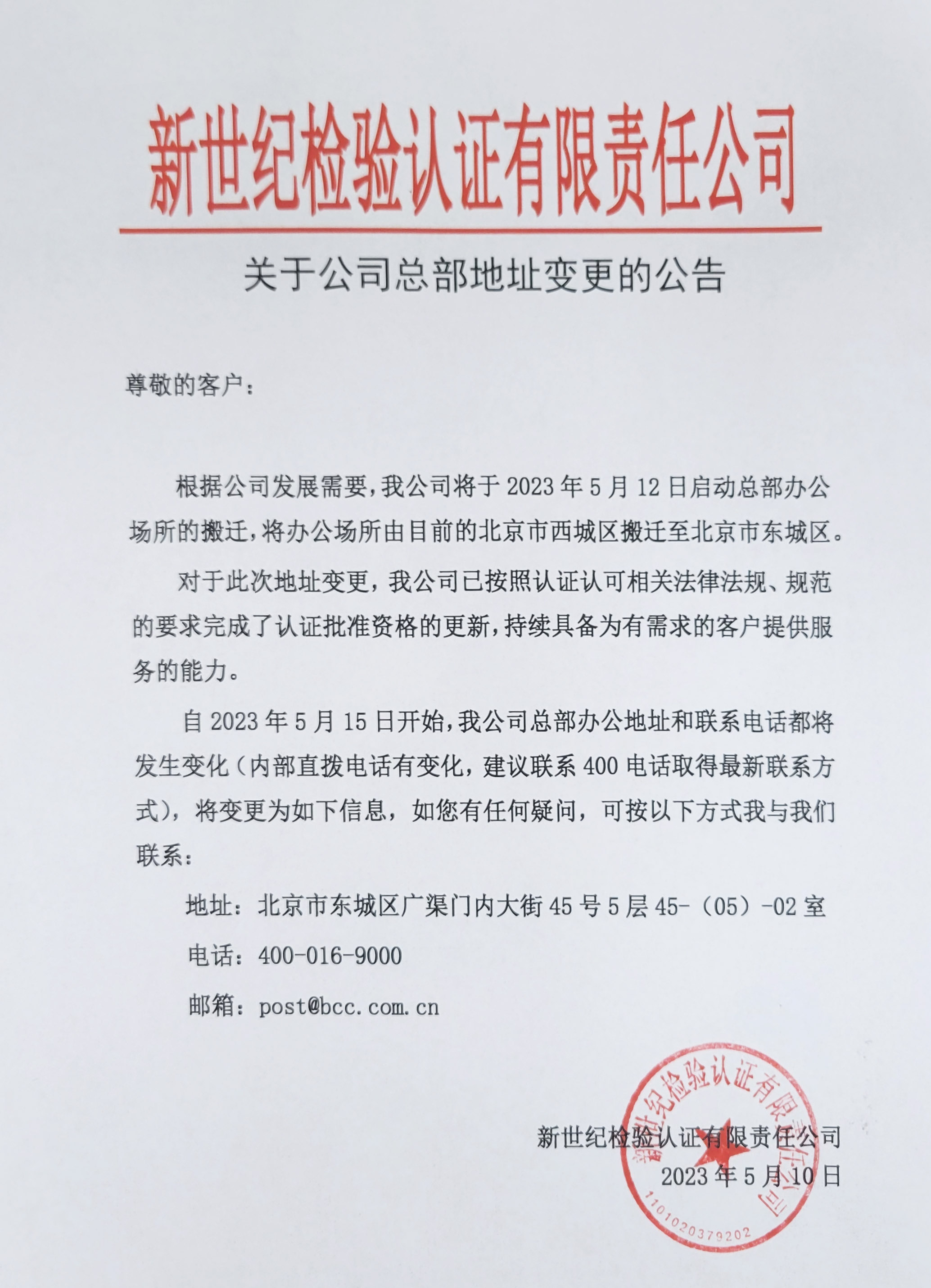 自2023年5月15日開(kāi)始,我公司總部辦公地址和聯(lián)系電話(huà)部將發(fā)生變化(內(nèi)部直撥電話(huà)有變化,建議聯(lián)系400電話(huà)取得最新聯(lián)系方式),將變更為如下信息,如您有任何疑問(wèn),可按以下方式我與我們聯(lián)系: